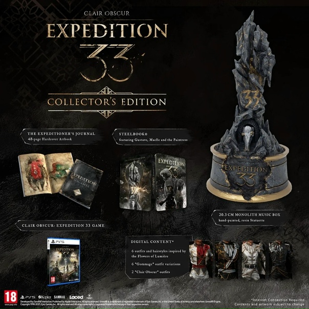В отличие от других ограниченных изданий, коллекционное, похоже, распродано окончательно. Оно также было эксклюзивом для PS5 и GameStop. Помимо всех бонусов DLC из изданий Lumiere и Digital Deluxe, в комплект входило: