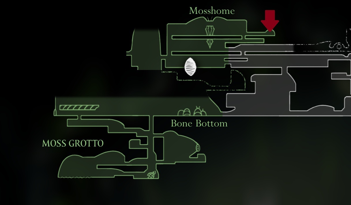 Вторая Мохберри расположена немного позже в Мшистом Гроте, во время подъема по правой части карты. На вершине самой большой комнаты вы заметите Мохберри прямо над вами. Чтобы добраться до нее, используйте удар вниз по летающему насекомому, находящемуся рядом. Воспользуйтесь импульсом от атаки, чтобы подбросить себя вверх, затем быстро атакуйте вверх, чтобы собрать Мохберри.